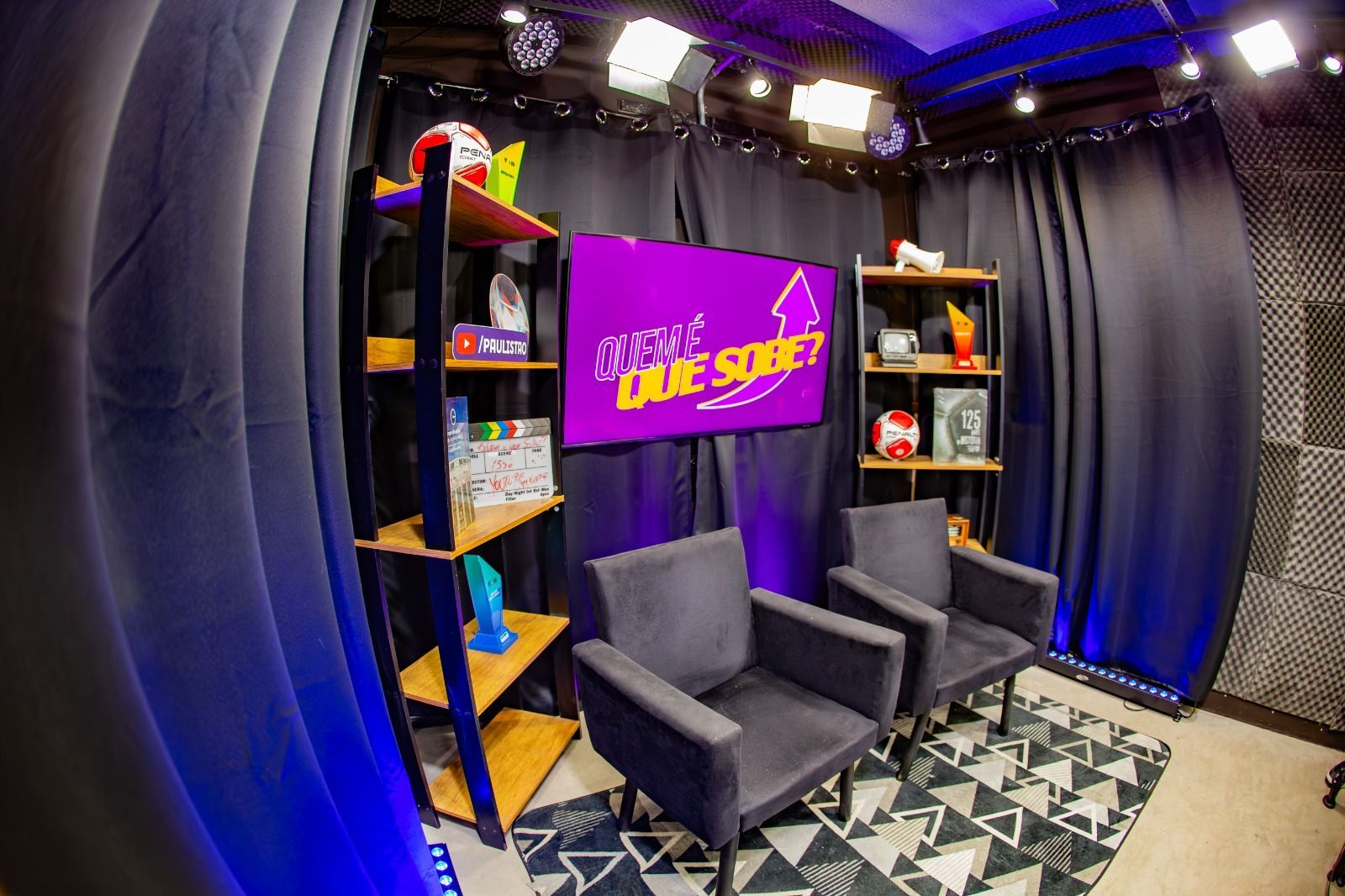Dois estúdios totalmente equipados para transmissões ao vivo, gravações de programas, live sales, videocasts e podcasts. Estrutura